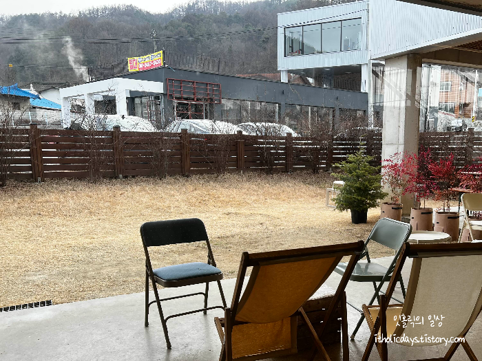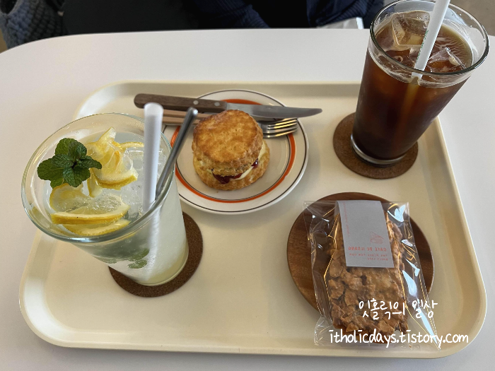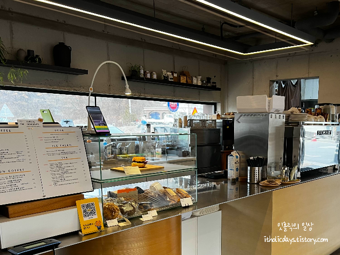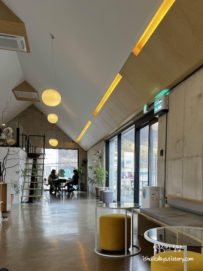 저희는 아이스 아메리카노와 소다음료, 그리고 쨈버터스콘(4,000원)과 아몬드가 들어간 바삭한 쿠키..? 를 주문했어요. 하나같이 너무 맛있어서 감동이었어요 :) 카페 자체가 창이 많아서 주위 풍경이 한눈에 보여니까 개방감이 있어서 노을이 질 때 가면 분위기 깡패가 됩니다. 해가 떠있을때 가서 이야기를 나누면서 여유있게 시간을 보내기 좋은 곳이예요. 하지만 차를 가지고 가기 좋은 카페인데 반대로 차가 없으면 불편한 곳이기도 해요. 그래도 차로 이동할 수 있다면 정말 강추하고 싶은 카페입니다! :)