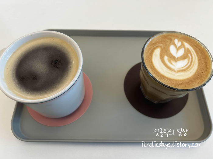 저는 가장 기본인 아메리카노를 주문했습니다. 일행은 플랫화이트를 주문했어요. 추워서 그런지 두 메뉴 모두 따뜻한 아이들로 시키게 되더라구요. 5월인데도 바람이 많이 불어서 추운 것 같아요.