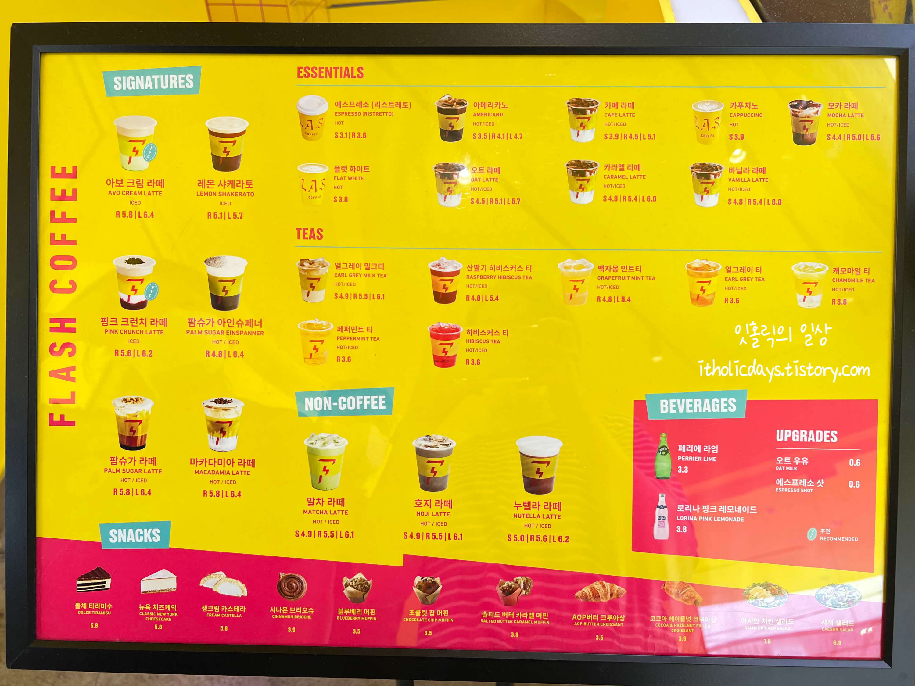 오랜만에 신사 가로수길을 갔는데 눈에 확 띄는 인테리어의 건물이 있어서 봤더니 플래시 커피 (FLASH COFFEE)라는 카페가 있어서 들어가봤습니다. 카페자체가 컬러풀하고 눈길을 사로 잡는 디자인이라 금방 찾아갈 수 있습니다. 길을 찾거나 약속을 잡을 때도 랜드마크 같은 느낌으로 괜찮을 것 같아요. 매장은 가로수길 뿐만 아니라 시청이나 경복궁, 압구정 등에도 있는 것 같습니다. 그래도 신사점이 플래그십 스토어라고 하네요. 그만큼 매장에 많이 신경을 쓴 것 같아요.