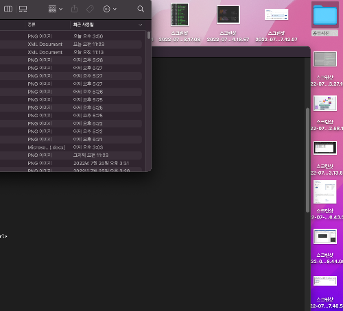 화면에 한가득 창을 띄워놓고 일을 하다가 스크린샷을 찍어야 할 일이 있어서 찍고 있었습니다. 사진을 찾으려고 보니 위 사진처럼 바탕화면에 저장된 스크린샷을 찾기 위해서 하나하나 최소화하거나 창을 치워야 했습니다. 창이 스무개 가까이 떠있었는데 갑자기 너무 불편해져서 한번에 바탕화면을 볼 수 있는 방법을 찾아봤습니다.