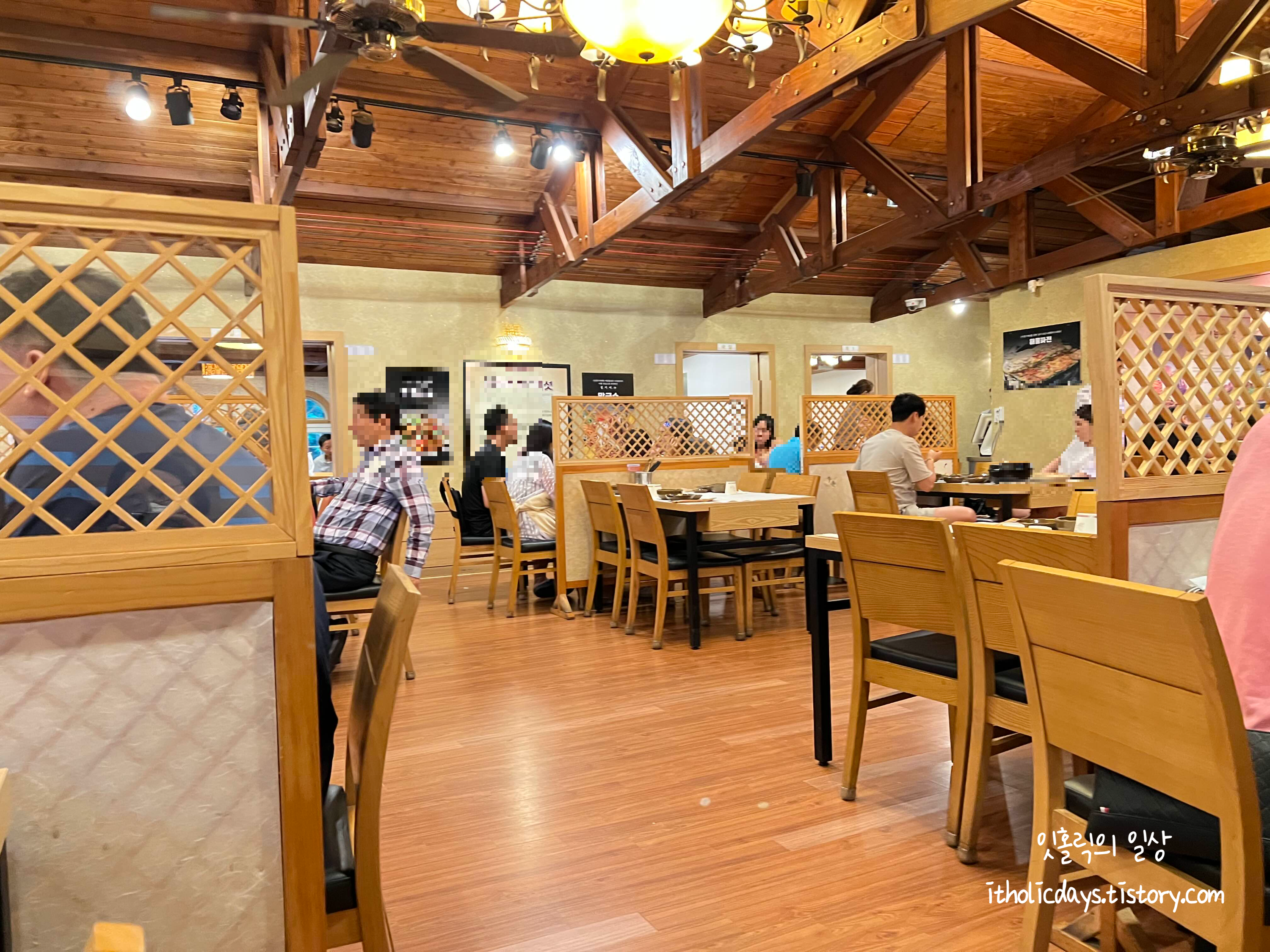 가족모임이라 7-8명 정도 됐는데도 5분 정도 기다리고 바로 테이블에 착석했습니다. 주위를 둘러보니 사람들이 꽤 많긴 했지만 4인 테이블은 비어있는걸 보면 주말인데도 따로 예약하거나 대기하지 않아도 테이블에 앉을 수 있는 것 같습니다.