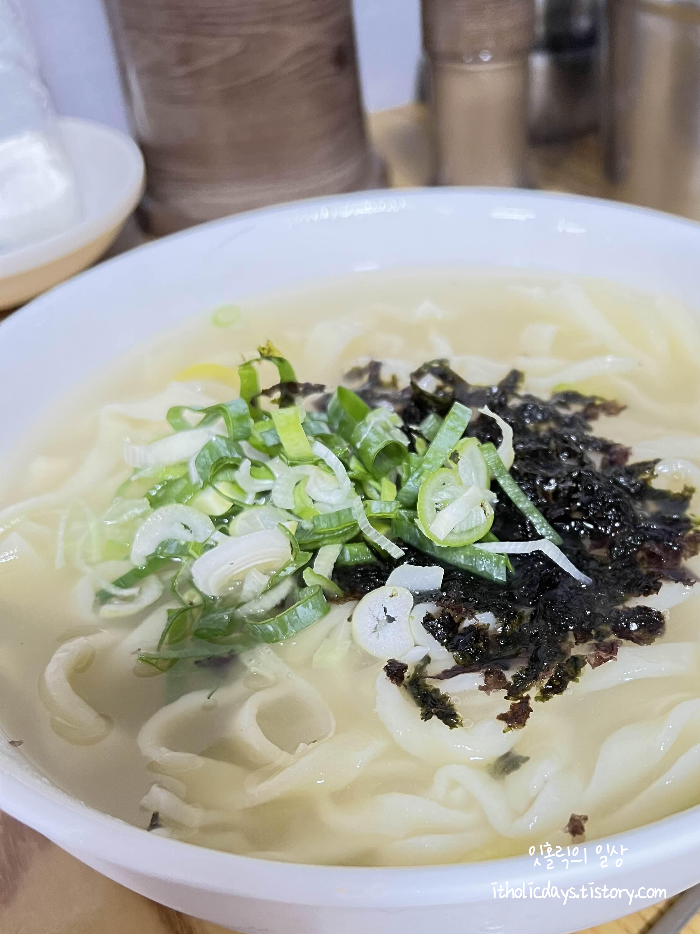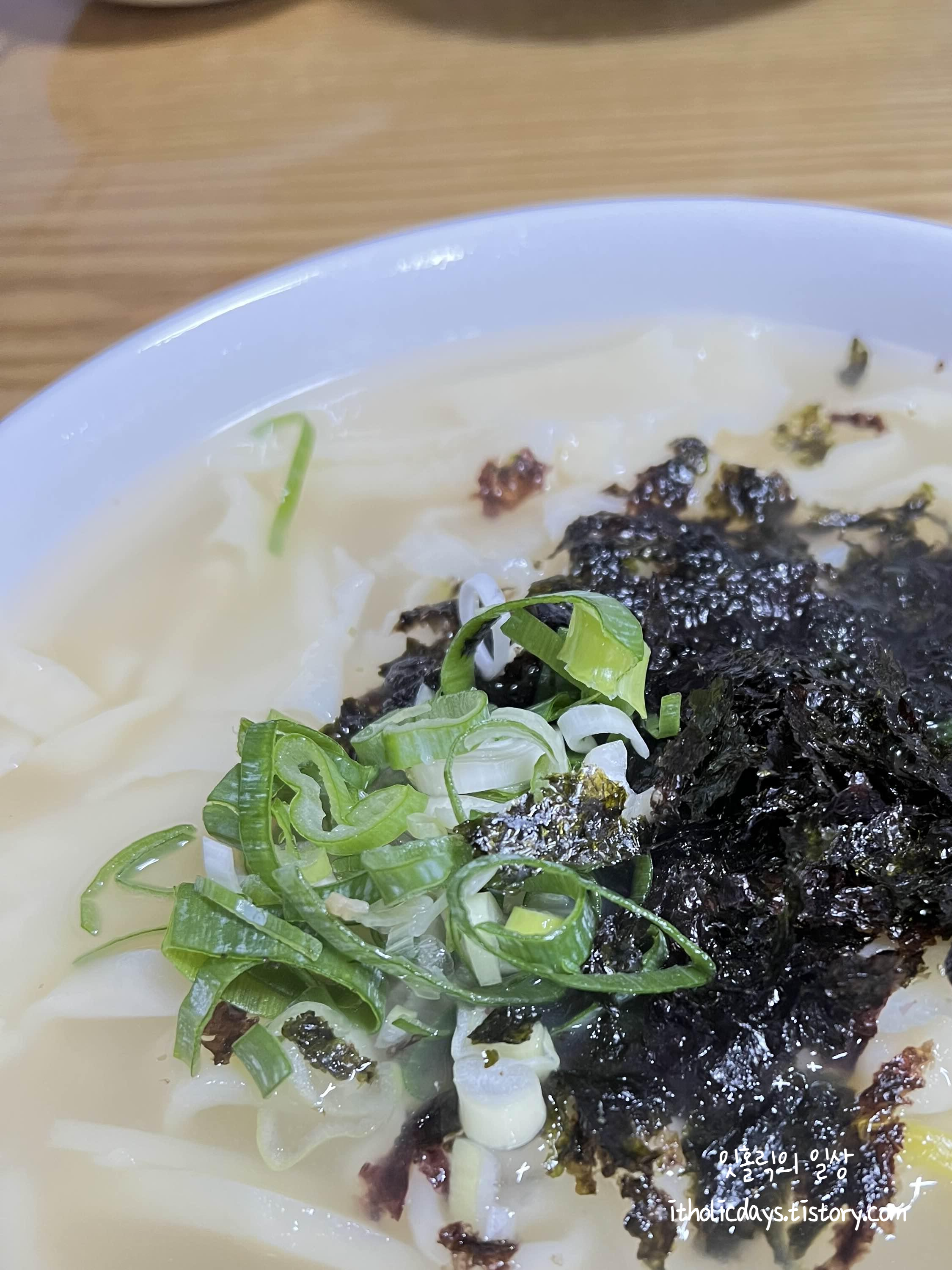 오른쪽에 제가 주문한 칼제비이고, 왼쪽이 일행분들이 주문한 칼국수인데, 외관상으로는 크게 차이가 안납니다. 진한 국물에 면만 칼국수 면을 넣었는지, 아니면 칼국수면에 수제비면을 섞었는지 차이인 것 같습니다. 똑같이 국물도 맛있고 면도 쫄깃합니다 :)