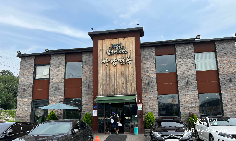 일요일에 오랜만에 밤일마을에 가서 식사를 하려고 들렀습니다. 강남면옥이 유명해서 점심을 먹으러 갔는데 사람들이 너무 많아서 20분 정도 기다렸네요. 날씨가 쨍쨍하니 너무 더워서 차 안에서 기다렸는데 주차장이 널찍해서 다행이지 밖에서 기다렸으면 찜통에 푹 익혀질뻔 했습니다.