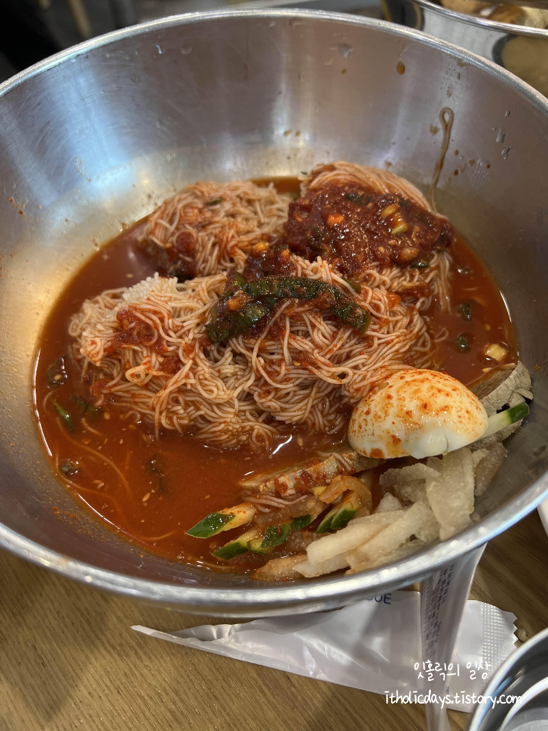 만두도 통통하니 속이 꽉 차서 냉면에 돌돌 말아서 먹으니 맛있었어요. 아쉬원건 비빔냉면인데, 고기집에서 사이드로 먹는 그런 맛이었습니다. 냉면을 좋아해서 맛집을 찾아다니는데, 여기 비빔냉면은 그다지 맛있는 느낌 보다는 입가심 느낌이었어요. 냉면만 드시는 분들은 조금 아쉬울것 같은 느낌이예요. 물냉면이 더 맛있을지는 모르지만 비빔냉면은 비추예요. 그나마 만두나 갈비찜이랑 같이 먹으면 먹을만한 맛입니다. 다음에 기회가 되면 물냉면을 한번 먹어보고 비교해봐야겠습니다. 함흥냉면 맛집이지만 갈비찜이 훨씬 더 맛있어서 차라리 갈비찜 전문점이라고 하면 더 어울릴것 같아요.