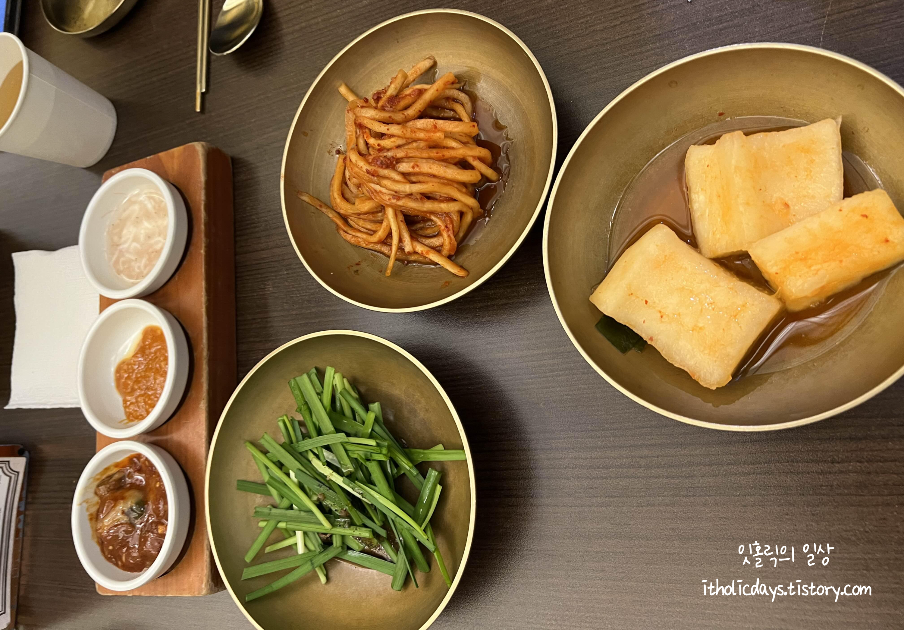 기본으로 부추랑 무채지, 깍두기와 새우젓, 어리굴젓 등 젓갈류 세가지를 세팅해주십니다. 나머지 젓갈 하나는 뭐였는지 기억이 잘 안나네요 하핫.. 국밥집인데도 가게가 깔끔하고 정갈해서 좋아요.