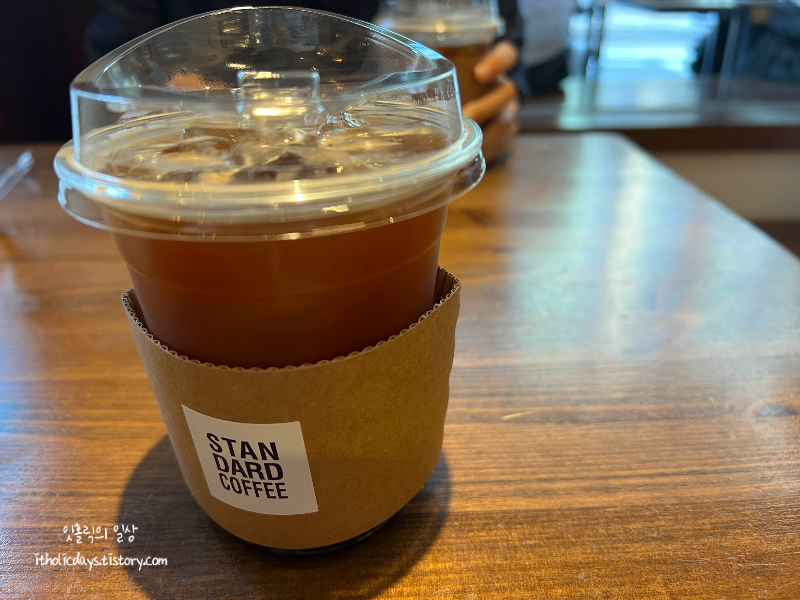 아이스 아메리카노를 받아서 테이블에 앉아 충무아트홀에서 본 킨키부츠 이야기 꽃을 피웠습니다. 매장에 방문하는 손님들이 대부분 충무에서 공연을 보러온 관람객인 것 같았어요. 물론 공연시간 전후로 가서 그럴지도 모르지만요 :) 매장이 아늑해서 더 좋은 것 같아요. 스타벅스는 사람들이 항상 바글바글해서 시끄러웠거든요. 자리에 앉는게 약간 힘들지는 몰라도 앉아서 이야기를 나누기에는 딱 좋습니다. 사장님은 혼자서 몰려드는 메뉴를 만드시느라고 바쁘셨어요. 메뉴가 많아서 그런 것 같은데 너무 친절해서 몇 분 더 여유롭게 기다려도 힘들거나 기분나쁘지가 않았어요. 신당역이나 충무아트홀에 놀러오시는 분들에게 강추예요!