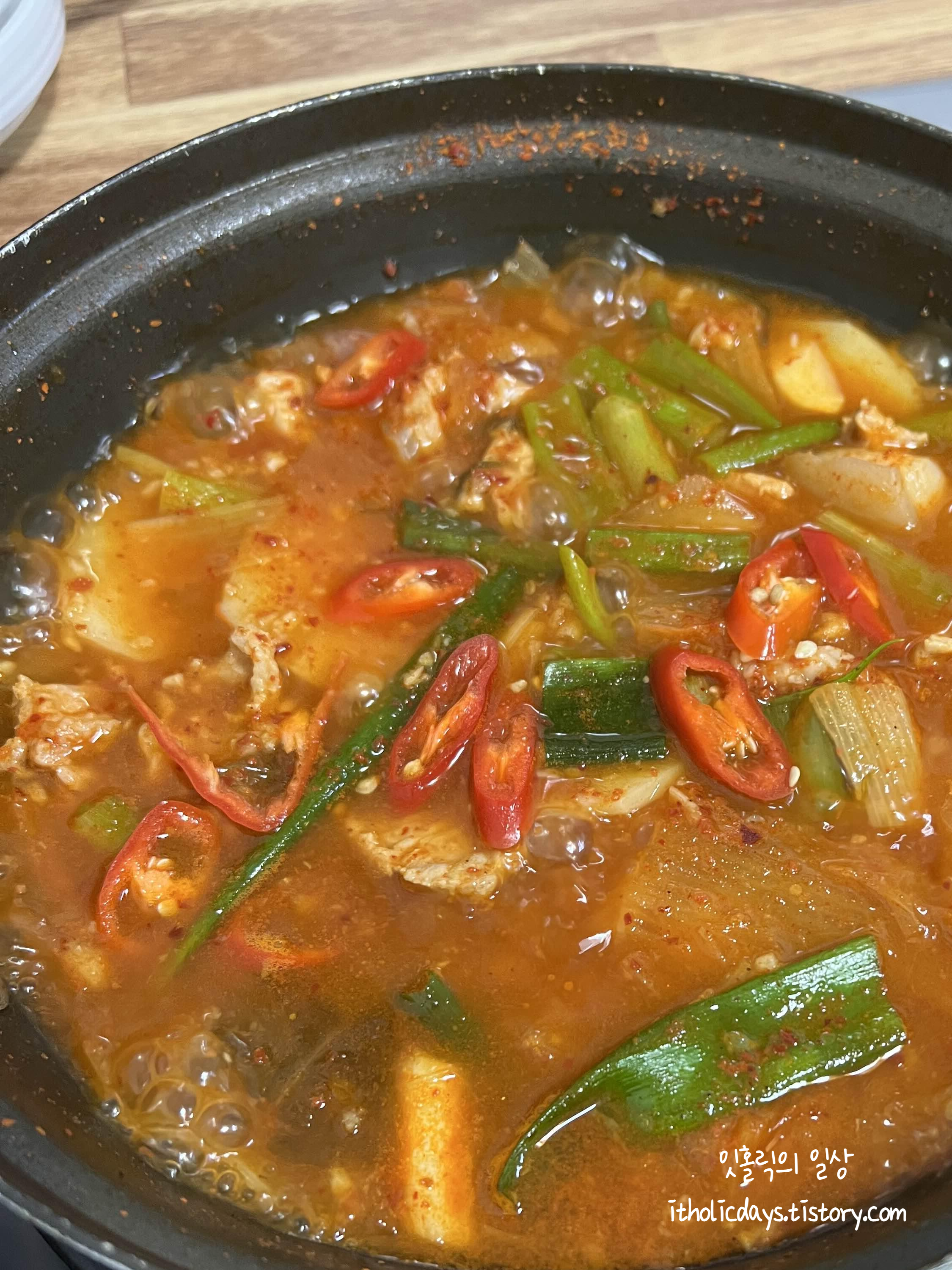 하지만 저는 대창을 별로 좋아하지 않기 때문에 짜글이(15,000원)이랑 배추전(7,000원)을 주문했어요. 기름기없이 깔끔한 맛으로 맥주랑 같이 먹으면 딱 맞아요. 사실 소주나 막걸리도 혹하긴 했지만 날이 너무 더워서 맥주로 주문했습니다.