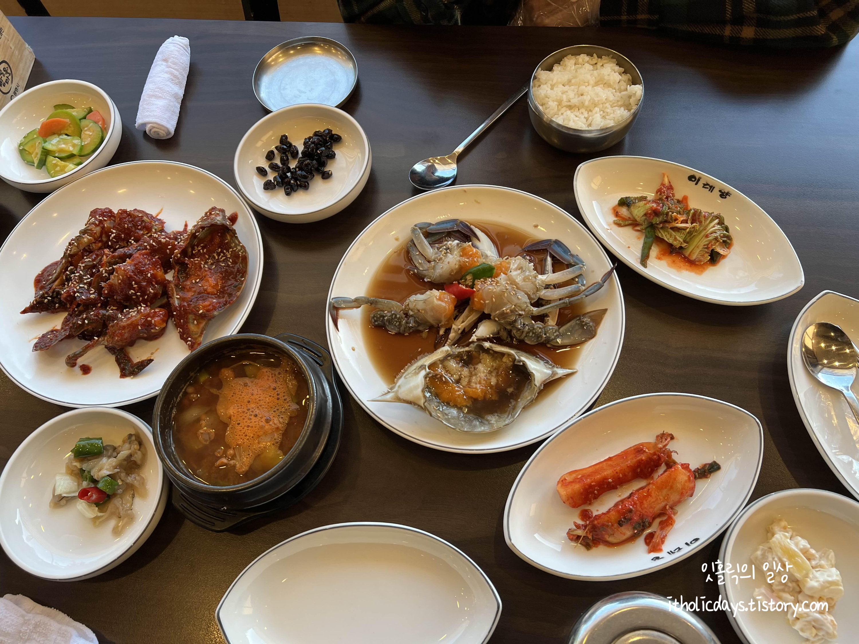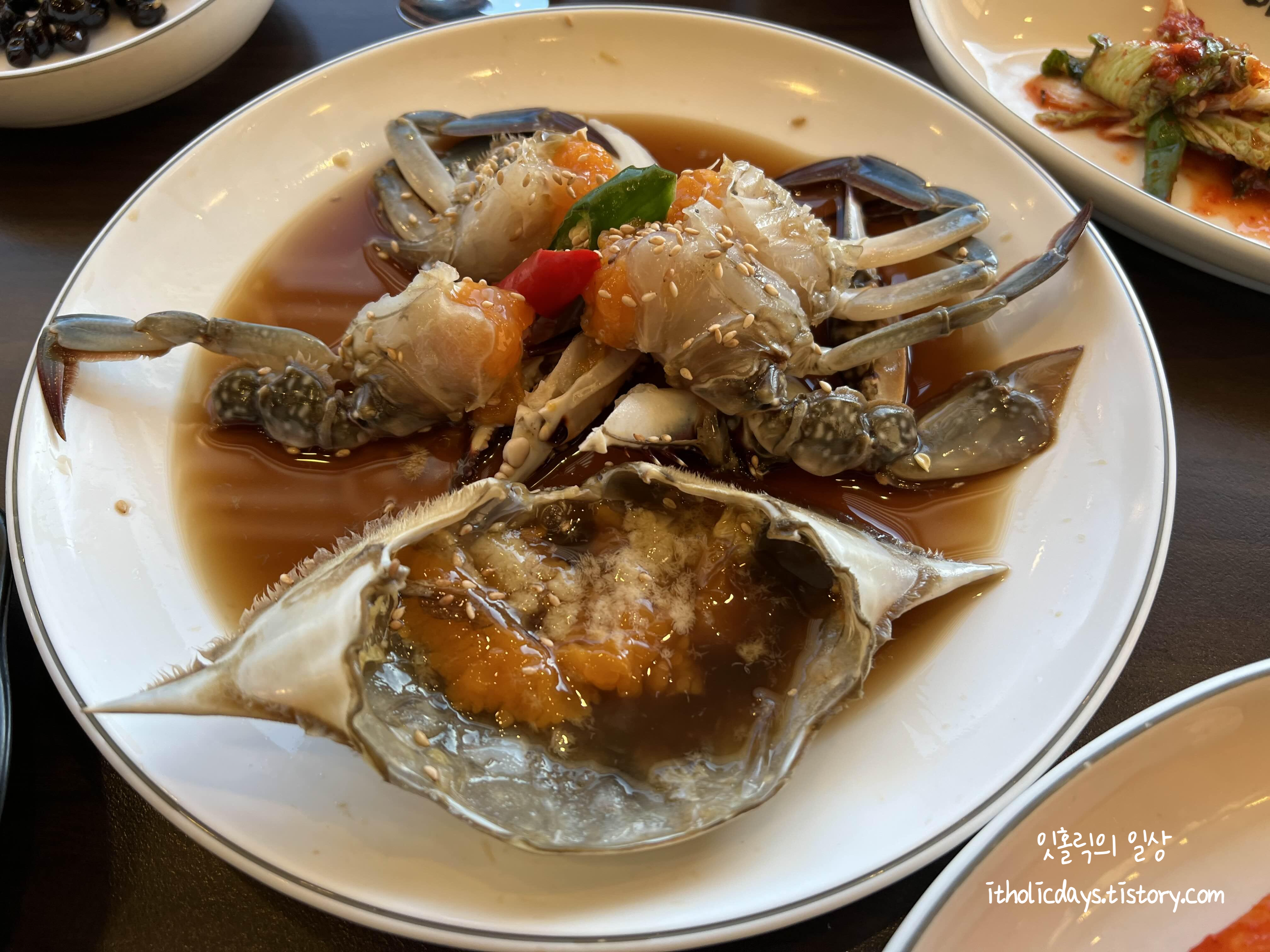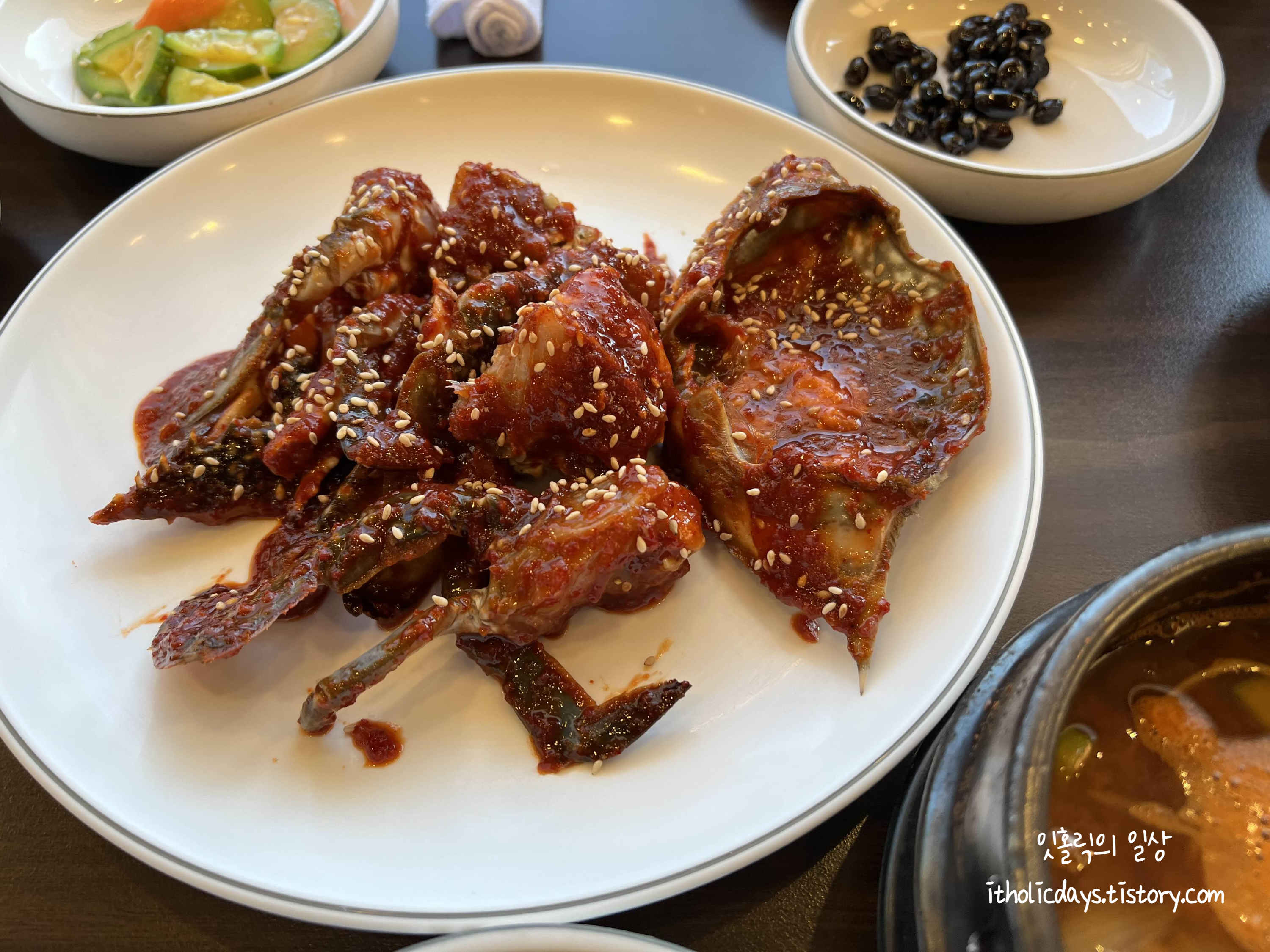 게장 1인분이 이 정도 크기로 한 마리 세팅되서 나옵니다. 한마리 치고 크기가 작지는 않아요. 살도 가득차서 먹는 맛은 있었어요. 게장은 짜지 않고 슴슴하면서 달달해서 좋았습니다. 양념게장의 양념도 너무 맵지 않게 찰진 매운맛이 간은 딱 좋았습니다. 아무래도 아쉬운 점이라면 물가 때문인지 가격이 조금 후덜덜 했던 것외에는 없었어요. 확실히 1인분이라 그런지 두 명이서 밥한공기에 먹기 알맞은 양입니다. 게딱지에 밥까지 비벼서 먹으니 맛있었어요.