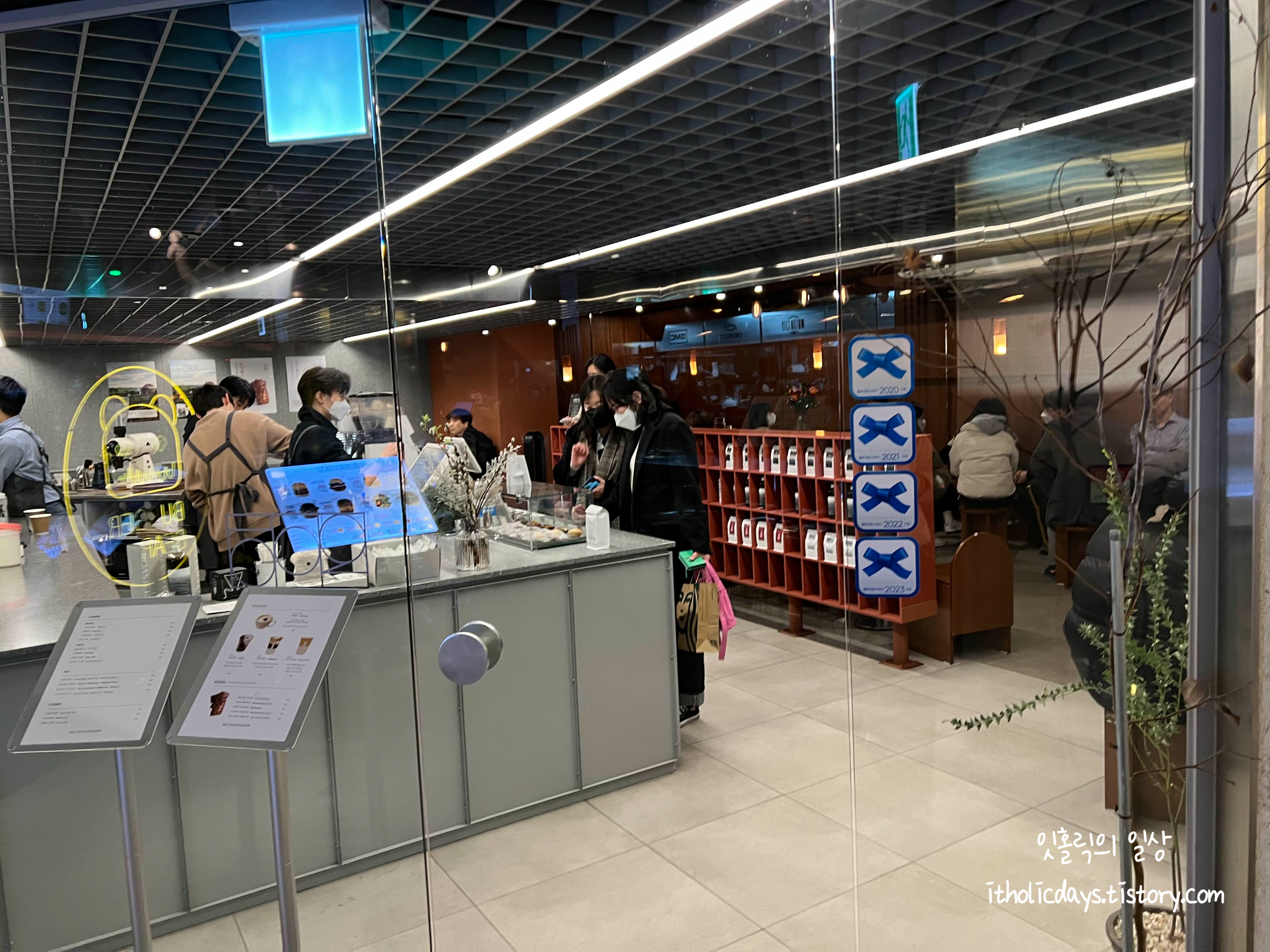 역삼역 근처에서 일하는 노동자들은 한번씩은 마셔봐야하는 공단커피. 같이 점심을 먹은 동료가 추천해줘서 다녀왔습니다. 정확한 카페 이름은 502 커피 로스터스예요. 여기서 공단커피를 판다고 하더라구요. 그 공단이 그 공단인가? 재밌는 생각도 들어서 갔는데 무려 블루리본을 네 개나 받은 곳이더라구요. 가산디지털단지가 본점이고 역삼점이 지점인 것 같았어요.