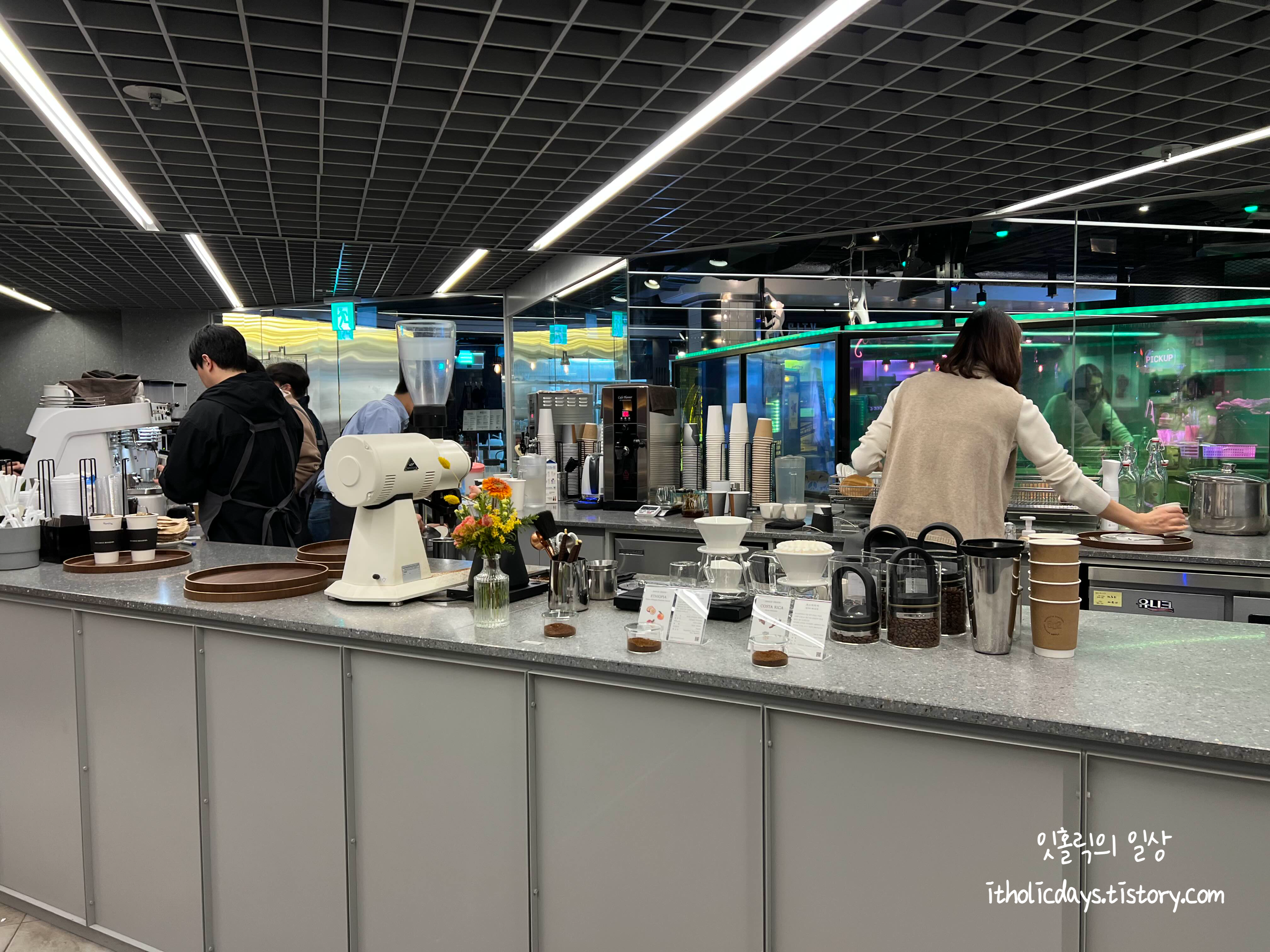 역삼역 3번 출구 쪽에 가까운데, 1층에 있어서 찾기는 쉽습니다. 502 커피 로스터스 카페가 공단커피를 판다는 이미지랑은 다르게 가게 내부는 모던하고 세련된 분위기였습니다.