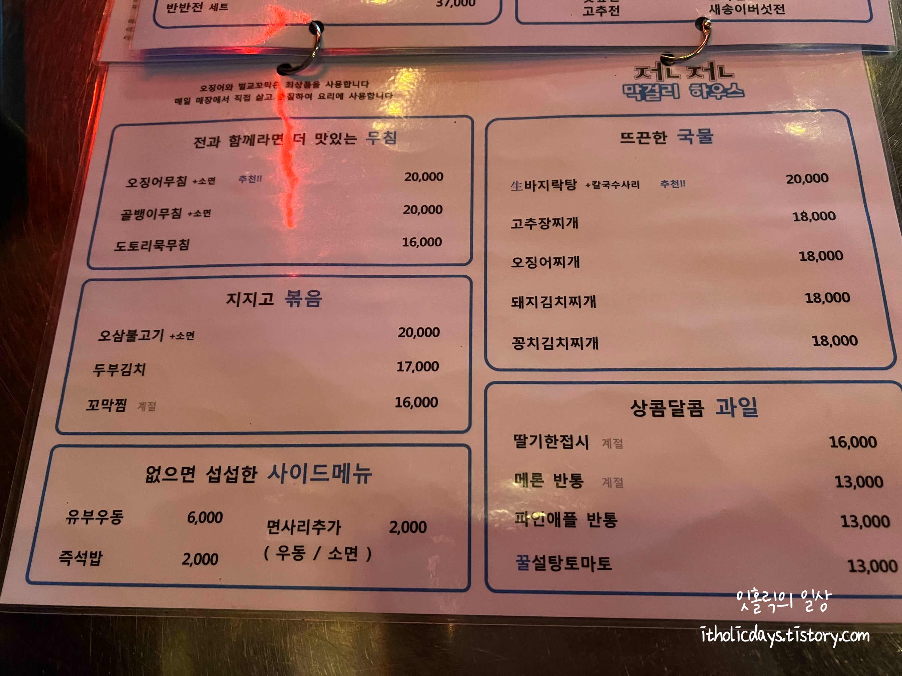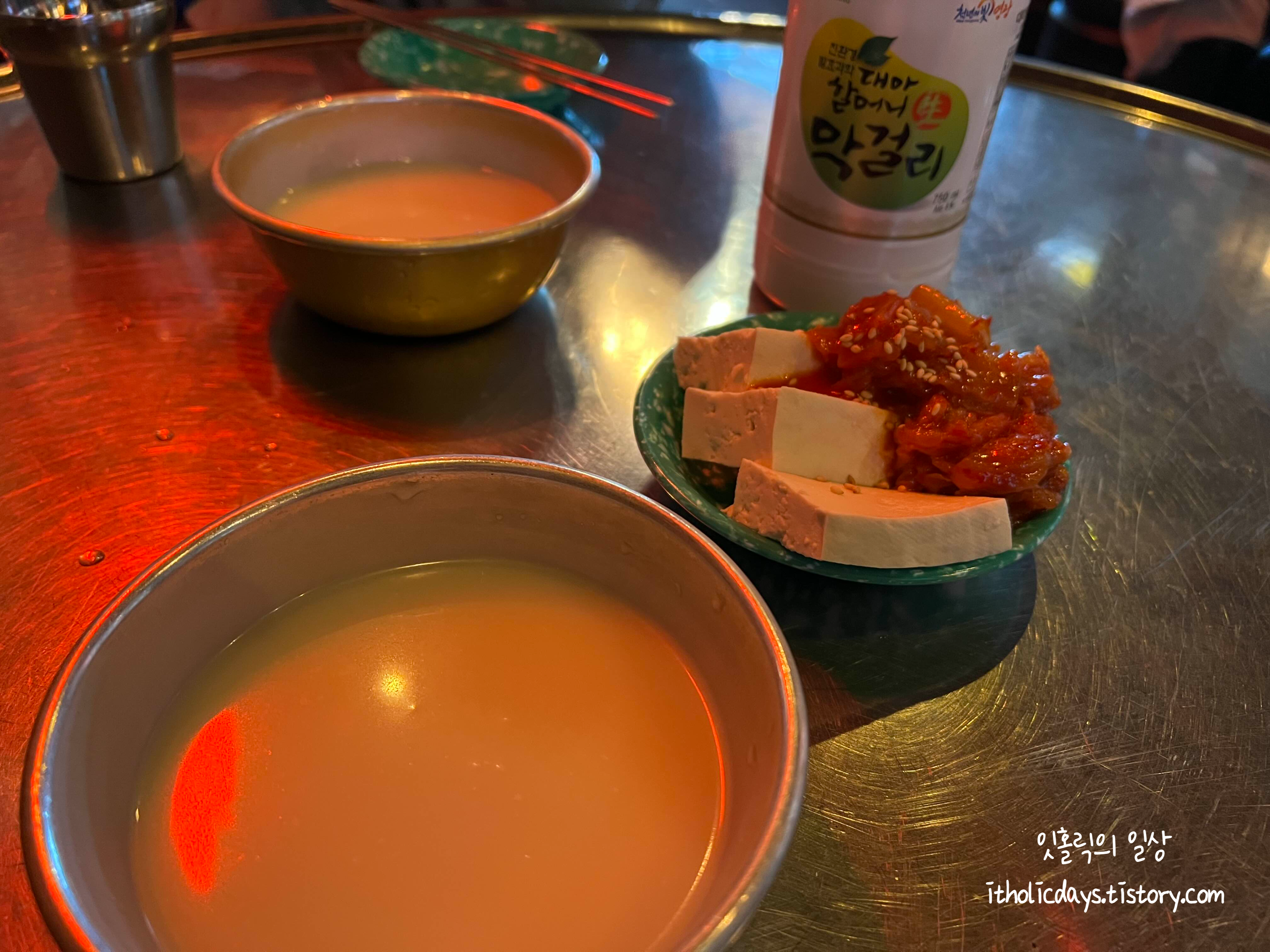 기본으로 두부김치를 주시는데 맛있어서 한 서너번은 리필해서 먹었네요. 할머니 막걸리랑 송명섭 막걸리를 마셨는데 평소에 잘 못마시는 막걸리라서 그런지 가격이 좀 있어도 맛있게 마셨네요. 가게 내 분위기가 레트로한 느낌이고 음악도 90년대 유행했던 노래들이 나와서 친구랑 같이 가서 옛날 얘기하면서 먹기 편한 곳이었어요.