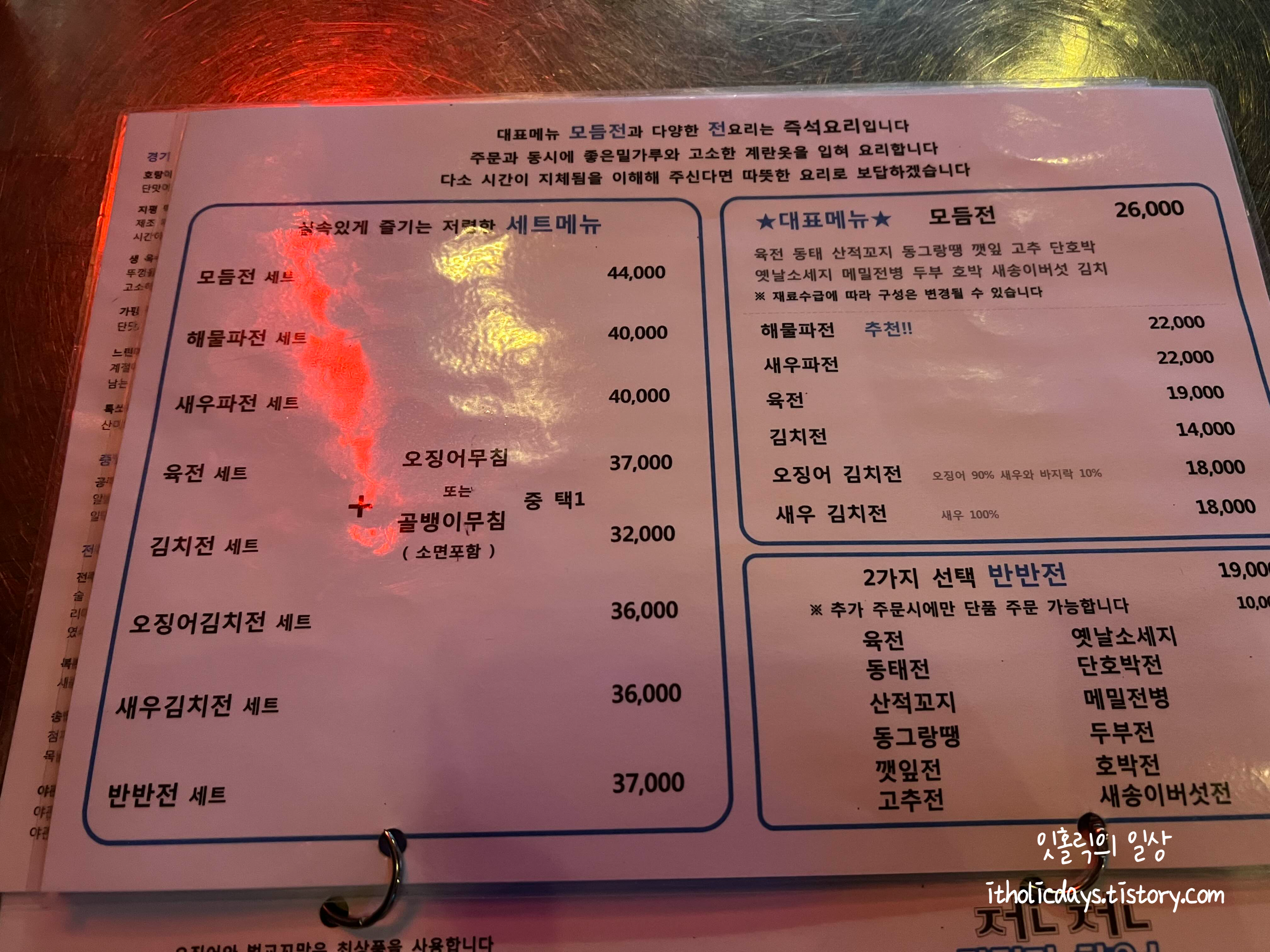 저희는 육전과 고추전을 반반으로 해서 먹었어요. 고추전도 따끈하고 육전도 맛있습니다.