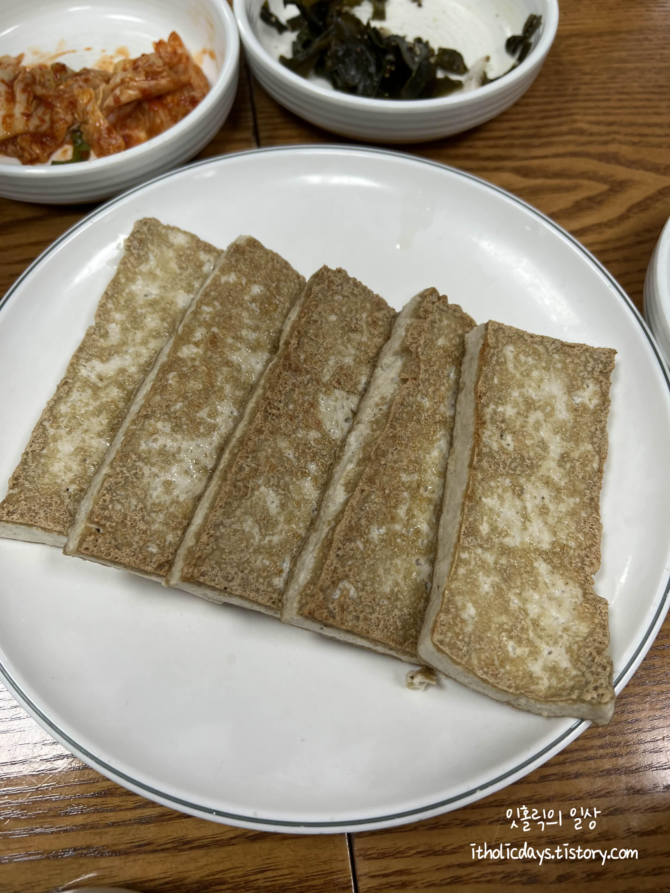 검정두부부침은 처음 먹어보는데 두부 색이 살짝 검고 뭔가 더 고소한 것 같은 느낌적인 느낌입니다.