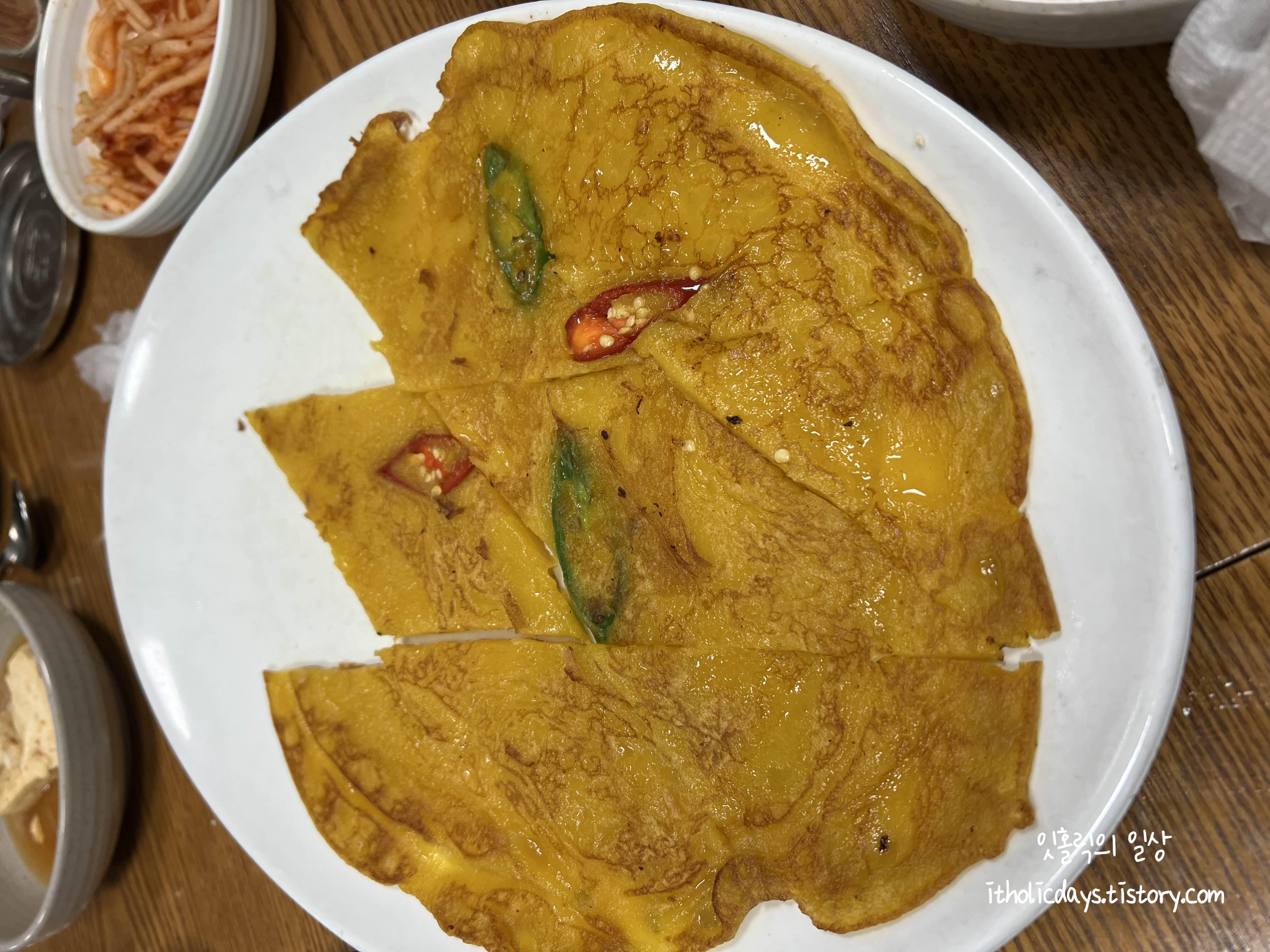 살짝 아쉬워서 황호박전도 주문해봤어요. 황호박전은 확실히 재료의 맛 때문에 그런지 달달하고 부드러운 맛이었습니다. 뭔가 전인데도 전 같지 않고 두부처럼 부드럽게 넘어가서 신기한 맛이었네요.