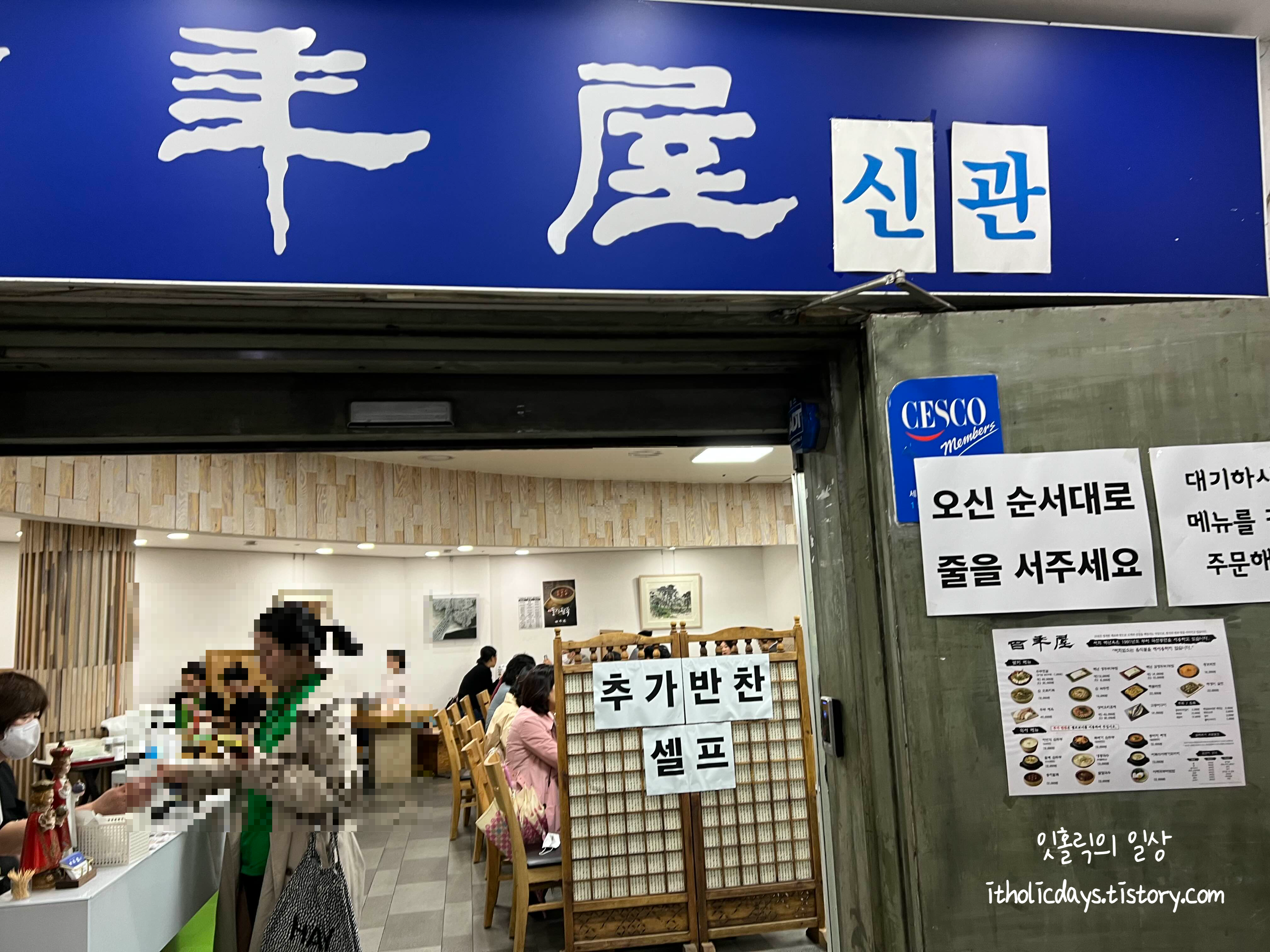 사람이 본관에 너무 많아서 신관으로 안내 받아서 내려갔습니다. 신관은 사실 처음 가봤는데 공간이 꽤 널찍하고 테이블 간 거리도 넓어서 좋은 것 같아요. 공연이 끝나고 가서 갑자기 사람이 붐볐던 것 같아요.
