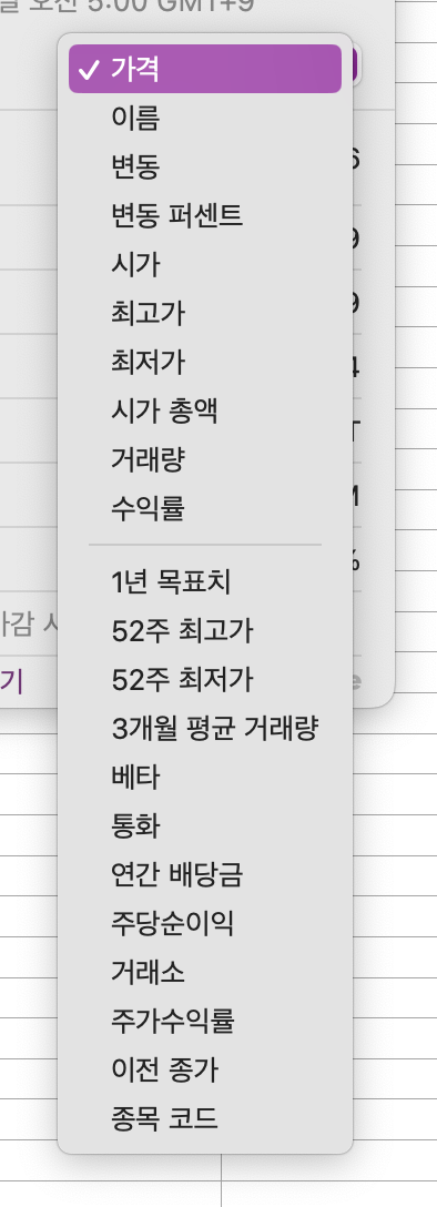 선택한 기업의 주식 정보를 해당 날짜를 기준으로 장 마감 시점의 데이터를 기준 데이터를 보여줍니다. 비단 가격뿐만 아니라, 기업명, 변동, 변동 퍼센트, 시가, 최고가, 최저가, 시가총액, 거래량, 수익률, 1년 목표치, 52주 최고가, 52주 최저가, 3개월 평균 거래량, 베타, 통화, 연간 배당금, 주당순이익, 거래소, 주가수익률, 이전 종가, 종목코드 등의 여러 정보를 입력할 수 있습니다.