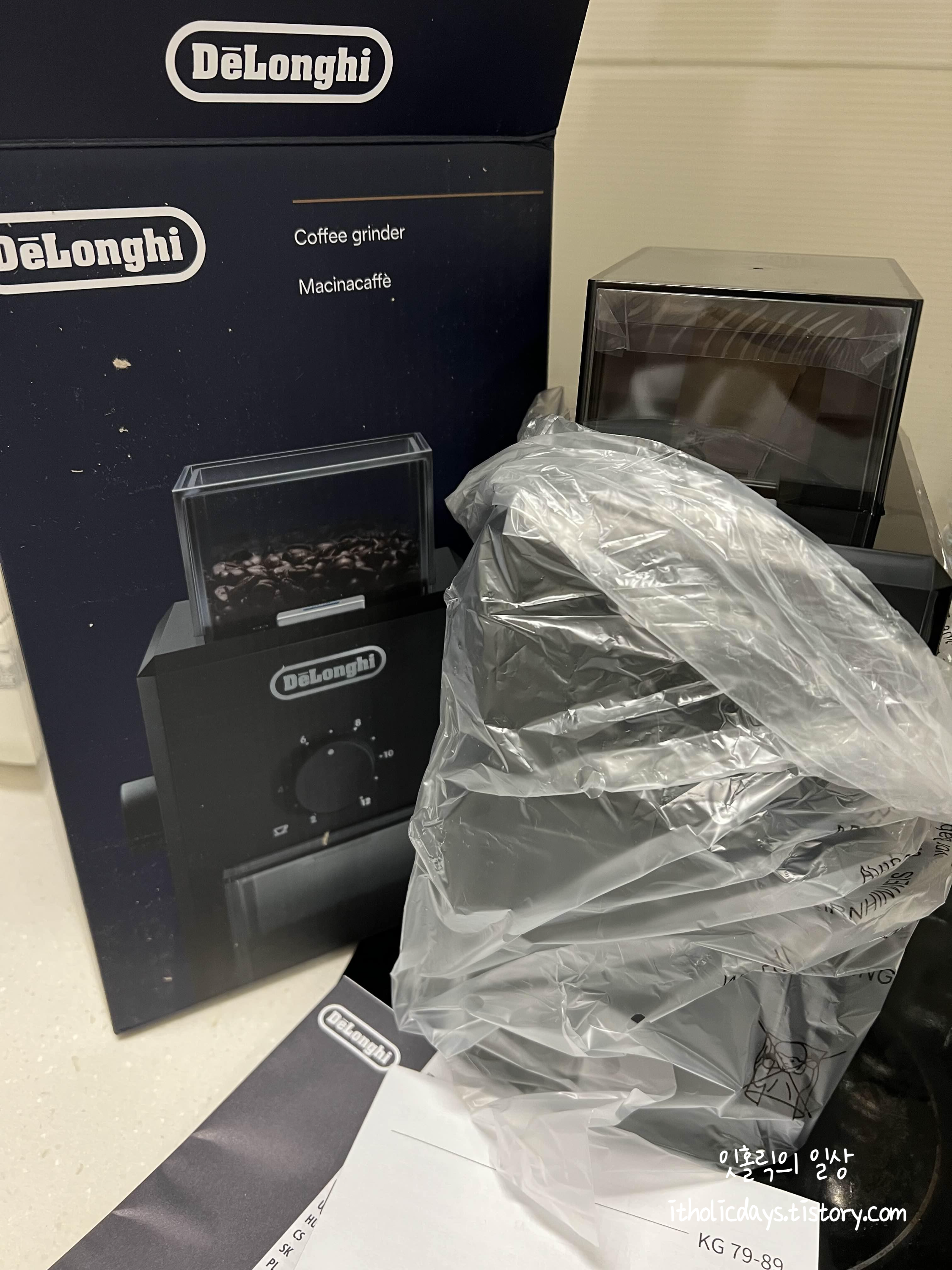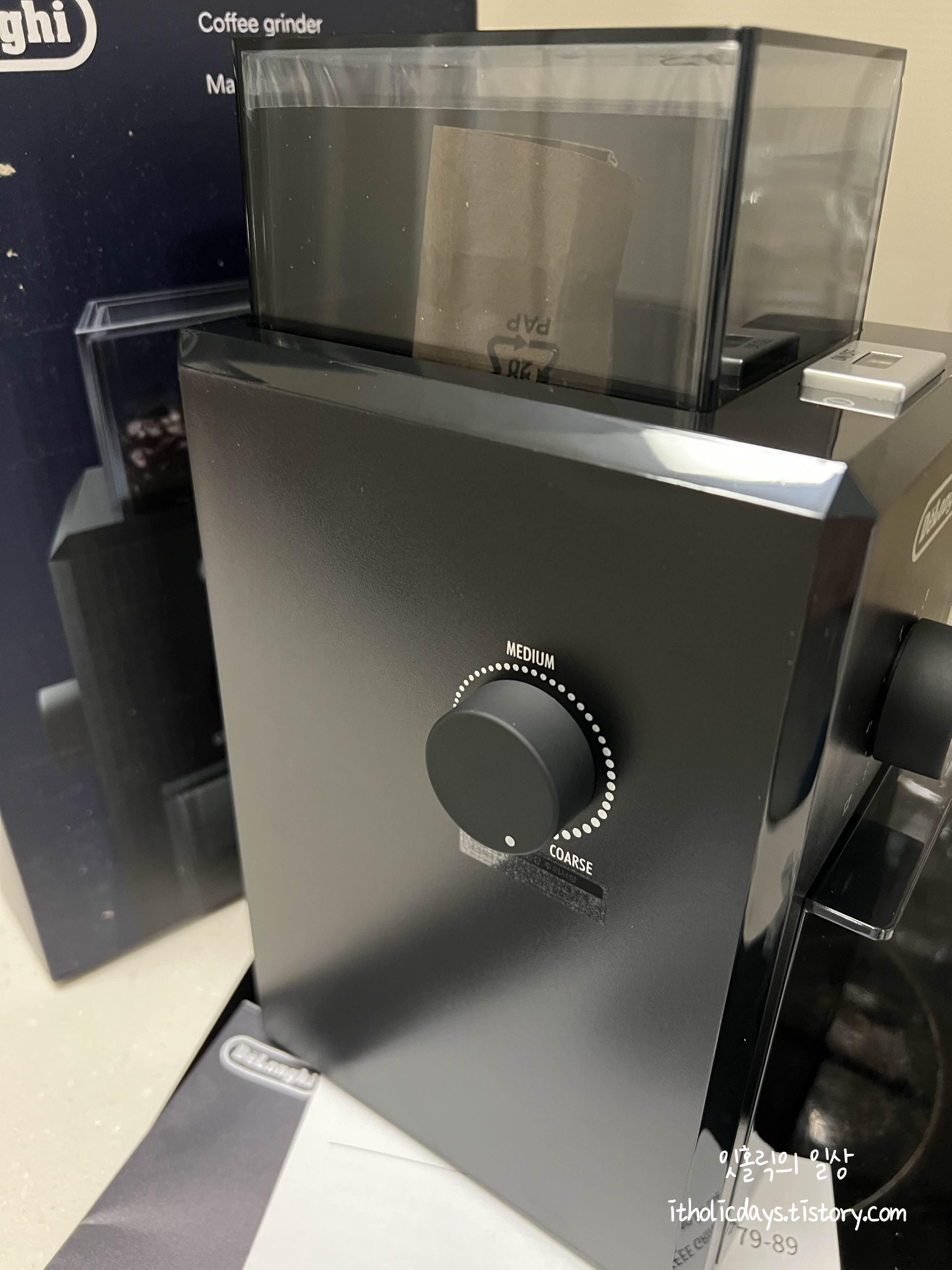 드디어 드롱기 커피 그라인더를 구입했습니다. 인터넷으로 한 8만원 중반대 가격으로 산 것 같아요. 거기에 포인트도 먹이고 해서 4만원대에 들여왔습니다. 맨날 눈팅으로만 보던 그라인더인데 손으로 5년을 갈아서 드립커피를 마시다가 힘들어서 질렀어요. 생각보다 사이즈가 작긴 했는데 주방이 작아서 너무 큰 것보다는 괜찮은것 같아요.