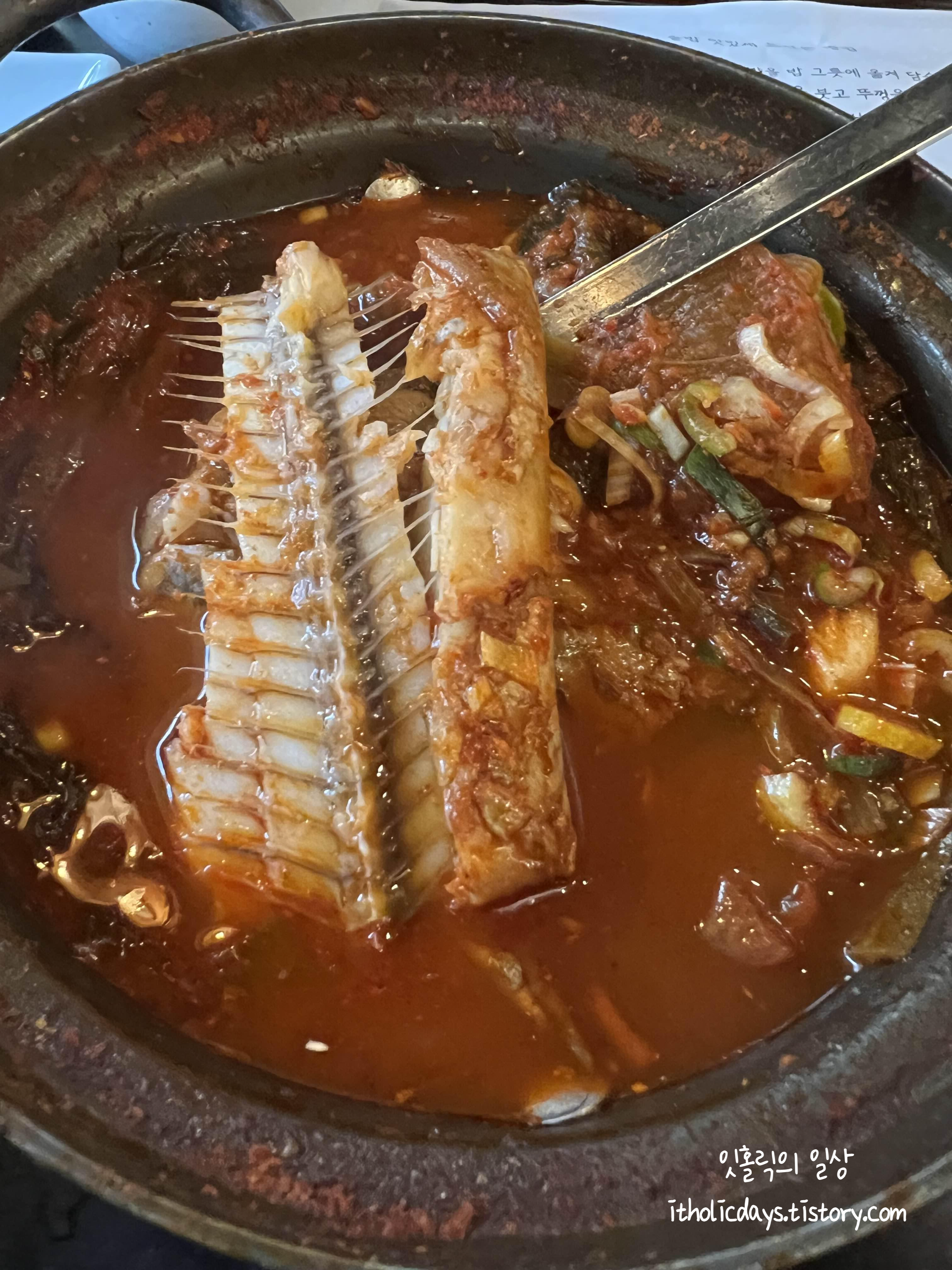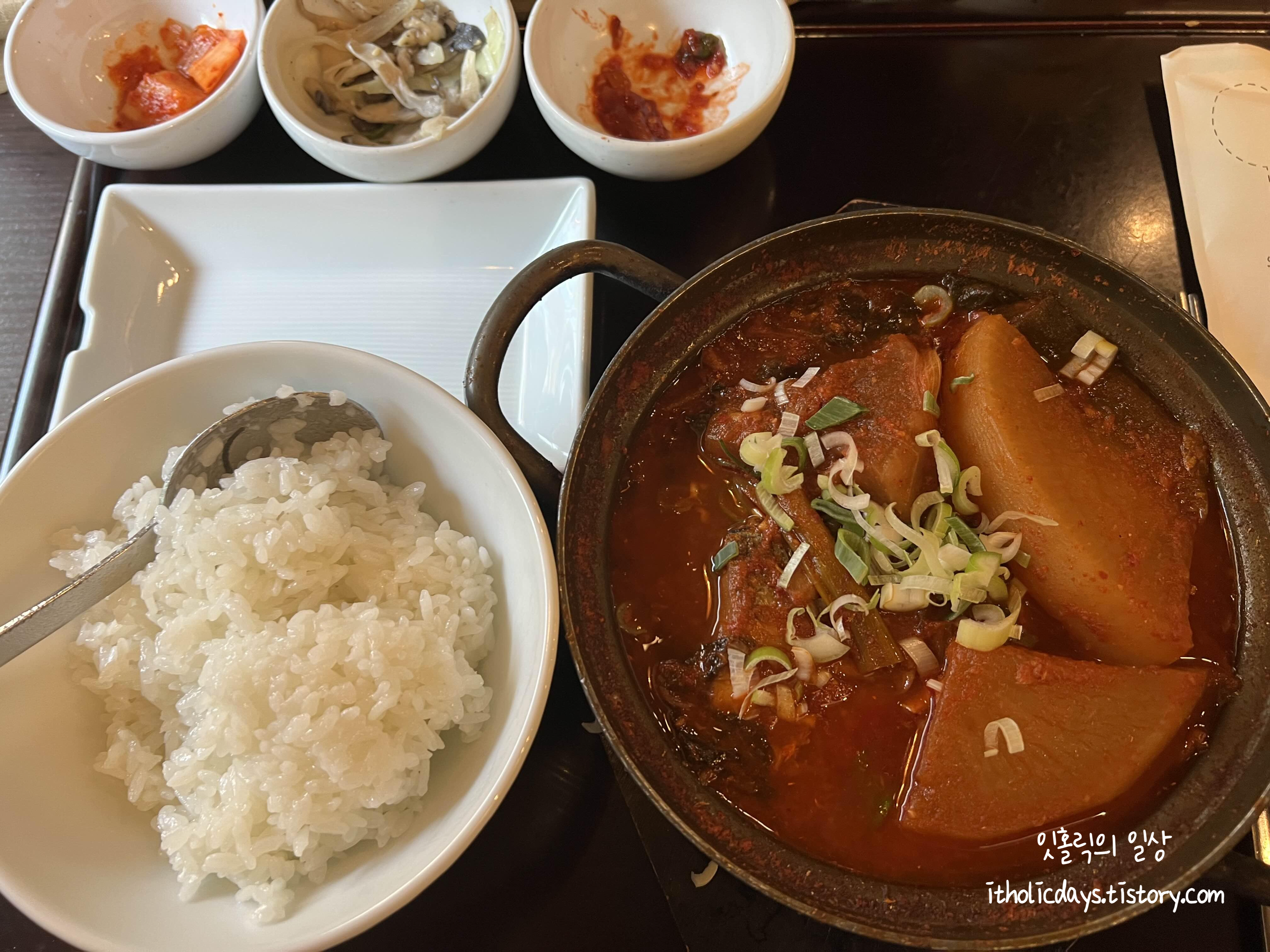 저는 오랜만에 시래기가 먹고 싶어서 시래기 갈치조림을 주문해봤습니다. 상상했던 담백하고 매콤하고 단 느낌의 맛이었어요. 통통한 갈치의 담백한 살과 매콤한 조림, 그리고 달달한 무의 조합에 밥 한공기 뚝딱했습니다.