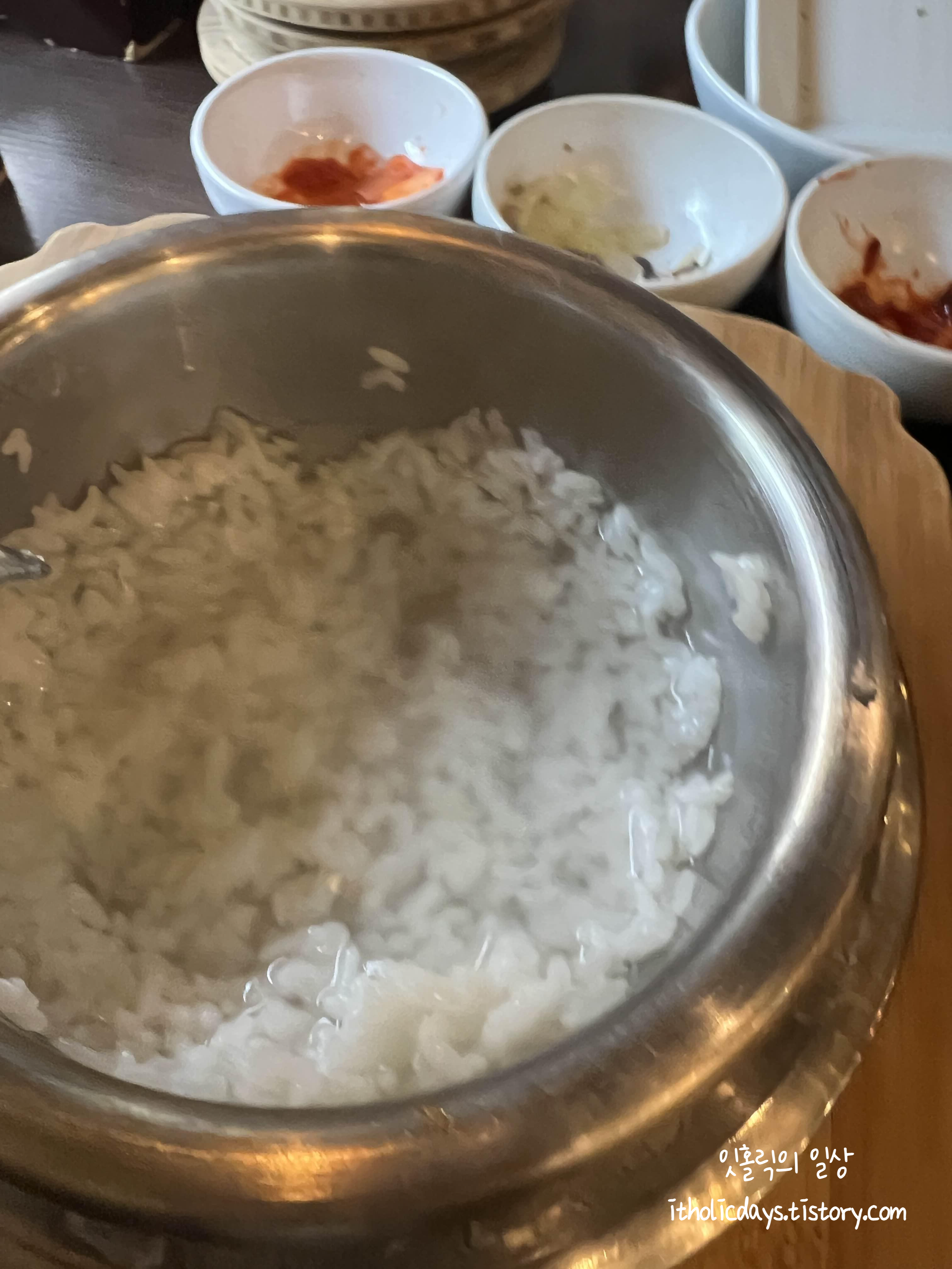 마무리는 역시 솥밥의 누룽지에 따뜻한 물을 부어서 호로록.