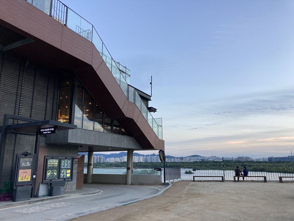 매장 내에도 테이블이 몇 석 없는데 주차 공간에 주차할 수 있는 차량 대수를 생각해보면 매장에 있는 테이블이 많이 적더라구요. 주말에 이곳을 방문하려면 빨리 움직이시는게 좋을 것 같습니다. 특히 노을이 지는 저녁 무렵에 주말이면 더 자리가 없을 것 같긴해요. 하지만 스타벅스 매장 앞에 벤치나 산책할 수 있는 곳이 있어서 커피를 사들고 밖으로 나와서 산책하면서 노을을 구경해도 좋을 것 같습니다. 사진에서 보이듯이 노을이 보이는 시야 안에 투썸플레이스가 있어요. 그리고 언뜻 보니 스타벅스는 라운드형 테이블만 있는데 투썸에서는 일자형으로 창문 향에 놓여진 테이블이 있는 것 같았습니다. 거기서는 창문을 바라보면서 노을을 감상할 수 있을 것 같더라구요.
