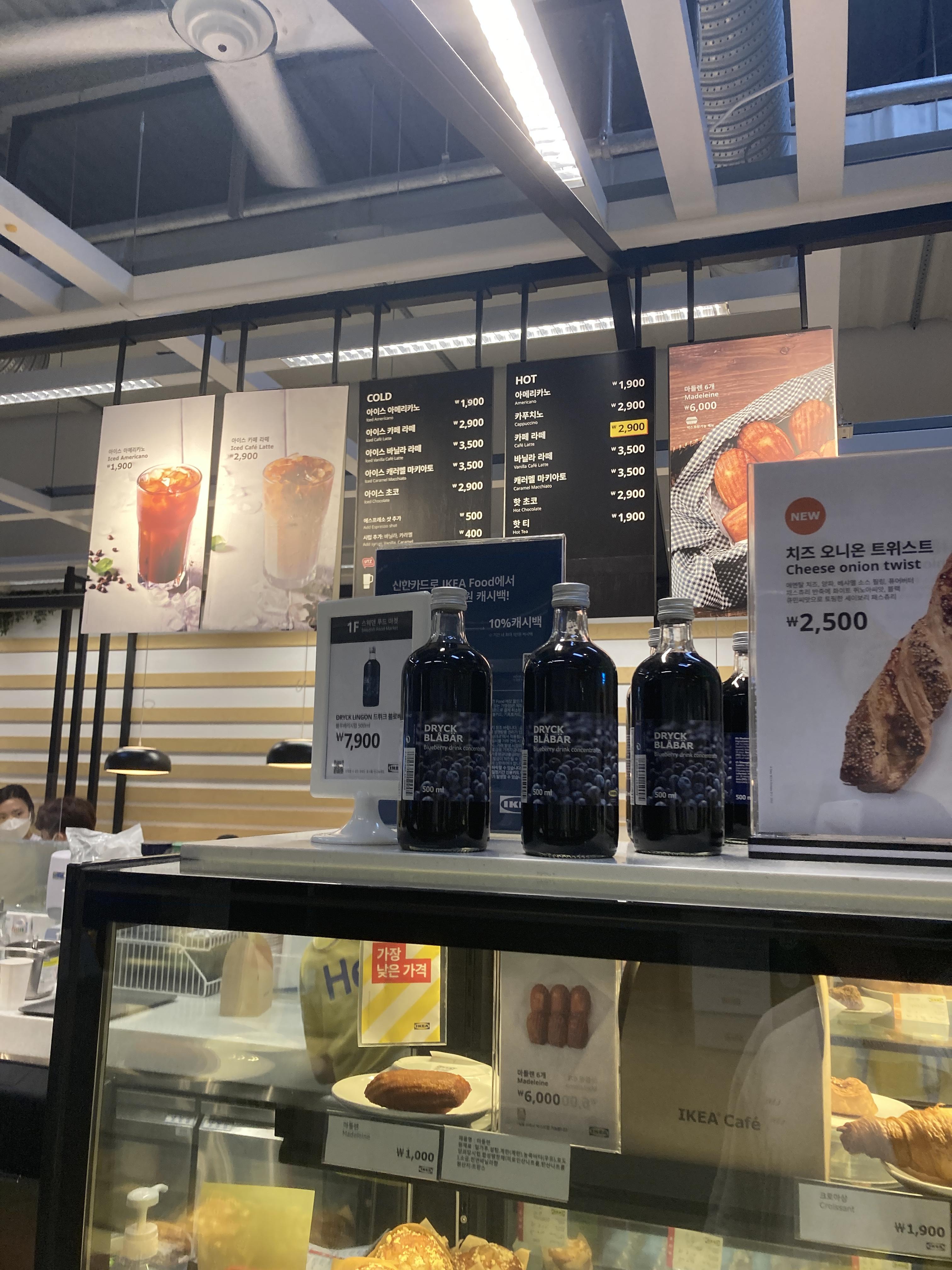 대부분 이케아를 방문하는 분들은 이케아의 레스토랑은 잘 알고 있지만 이케아 카페는 잘 모르는 경우가 있습니다. 레스토랑이 저렴하게 다양한 음식을 팔아서 많이 유명하거든요. 특히 미트볼이나 연어 요리, 그리고 고로케 같은 메뉴들이 개인적으로는 가성비가 좋다고 느껴졌습니다. 하지만 밥을 먹고 가거나 별로 식사할 생각이 없어 레스토랑을 지나쳐도 걱정할 필요는 없습니다. 쇼핑으로 목이 마르면 레스토랑을 지나 조금만 걸으면 이케아 카페가 나오거든요. 광명 이케아의 경우에 이케아 카페는 쇼룸에서 소품들을 파는 코너를 지나 계산대가 있는 층으로 내려가는 에스컬레이터 전에 위치해 있습니다.