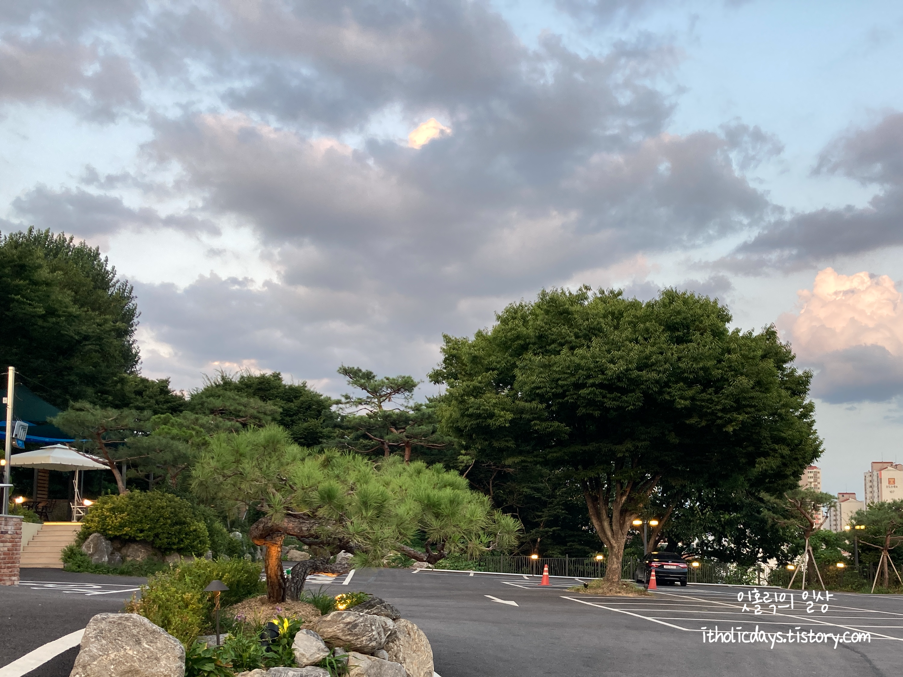 가든파티 주차장이 꽤 넓었어요. 주말에 갔는데도 코로나 때문인지 차는 많이 없었습니다. 들어가보니 테이블은 꽤 차있었어요. 입구에 들어가서부터 안내해주시는 분이 친절하게 QR인증하는 걸 기다려주시고 테이블까지 안내해주셨어요.